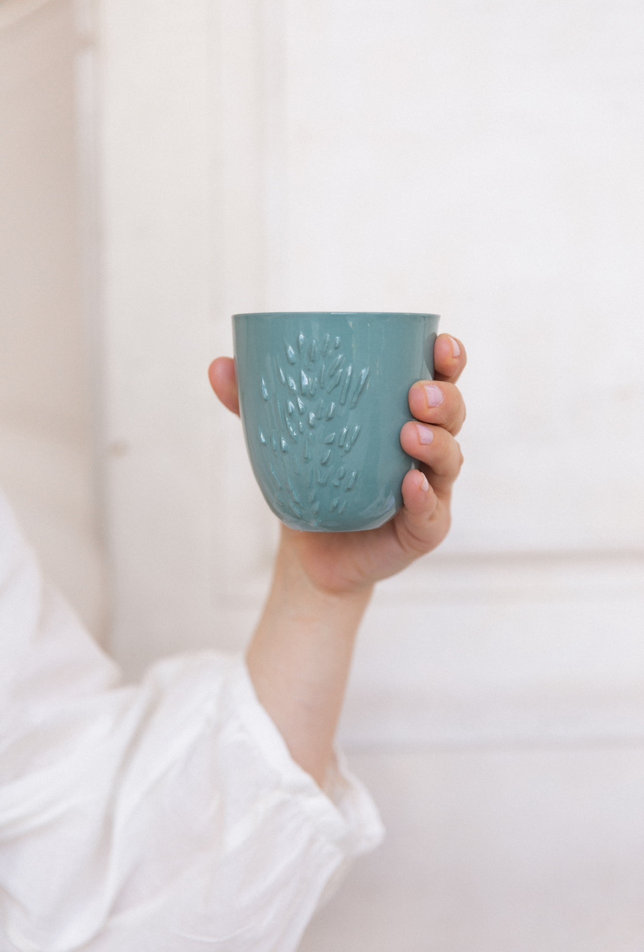 Dans mon atelier, chaque pièce naît lentement, entre mes mains. Je travaille la porcelaine de coulage, que je teinte avec soin, et je crée moi-même chacun de mes moules.