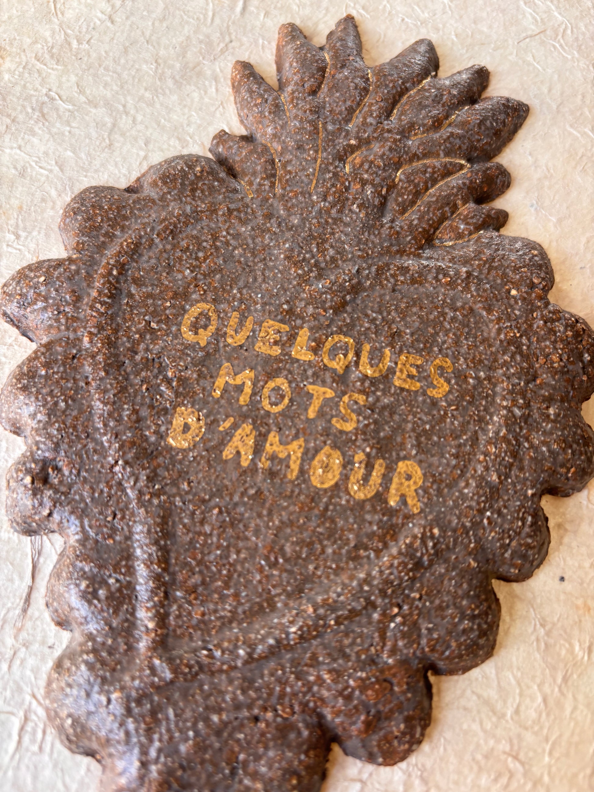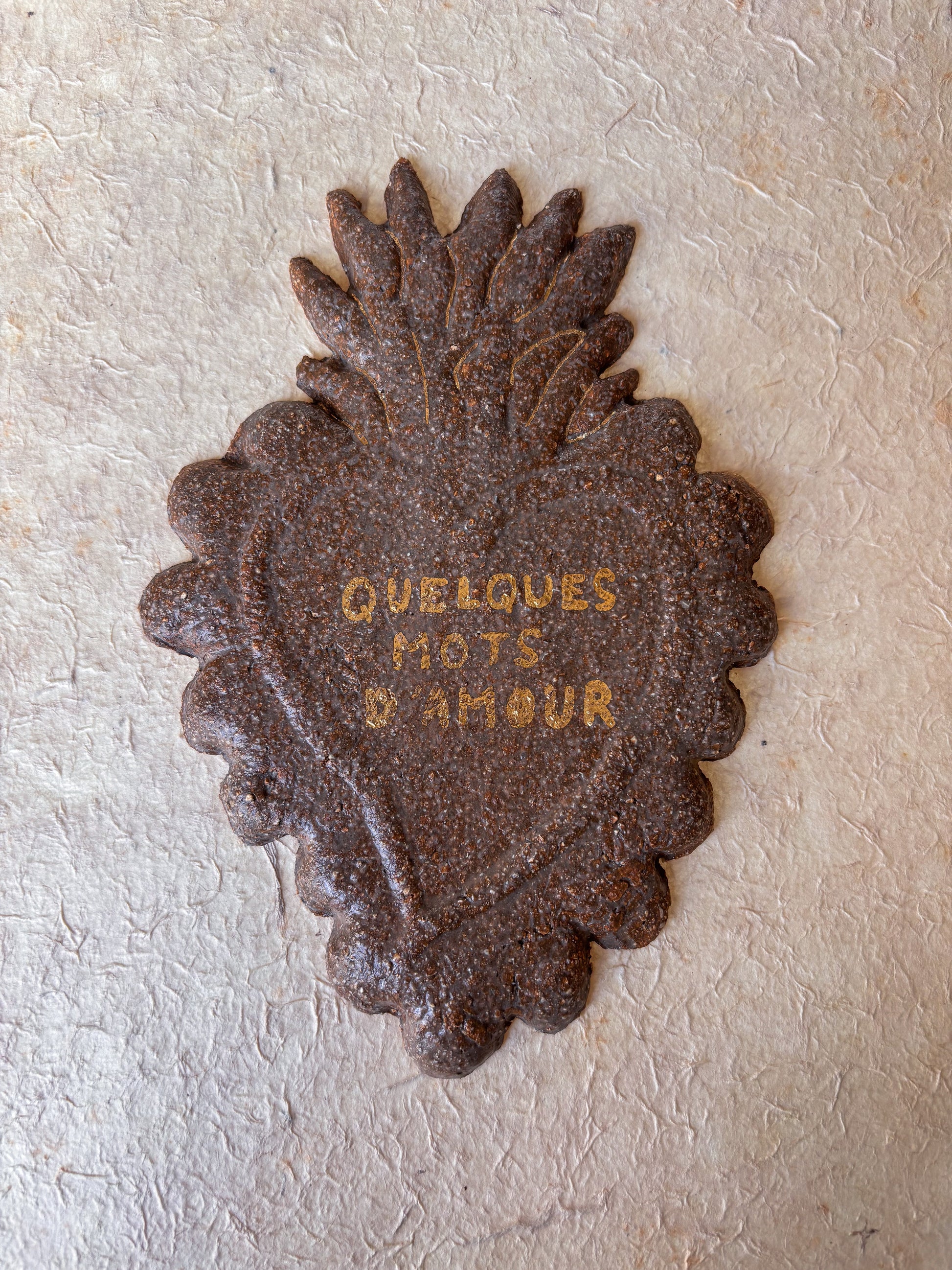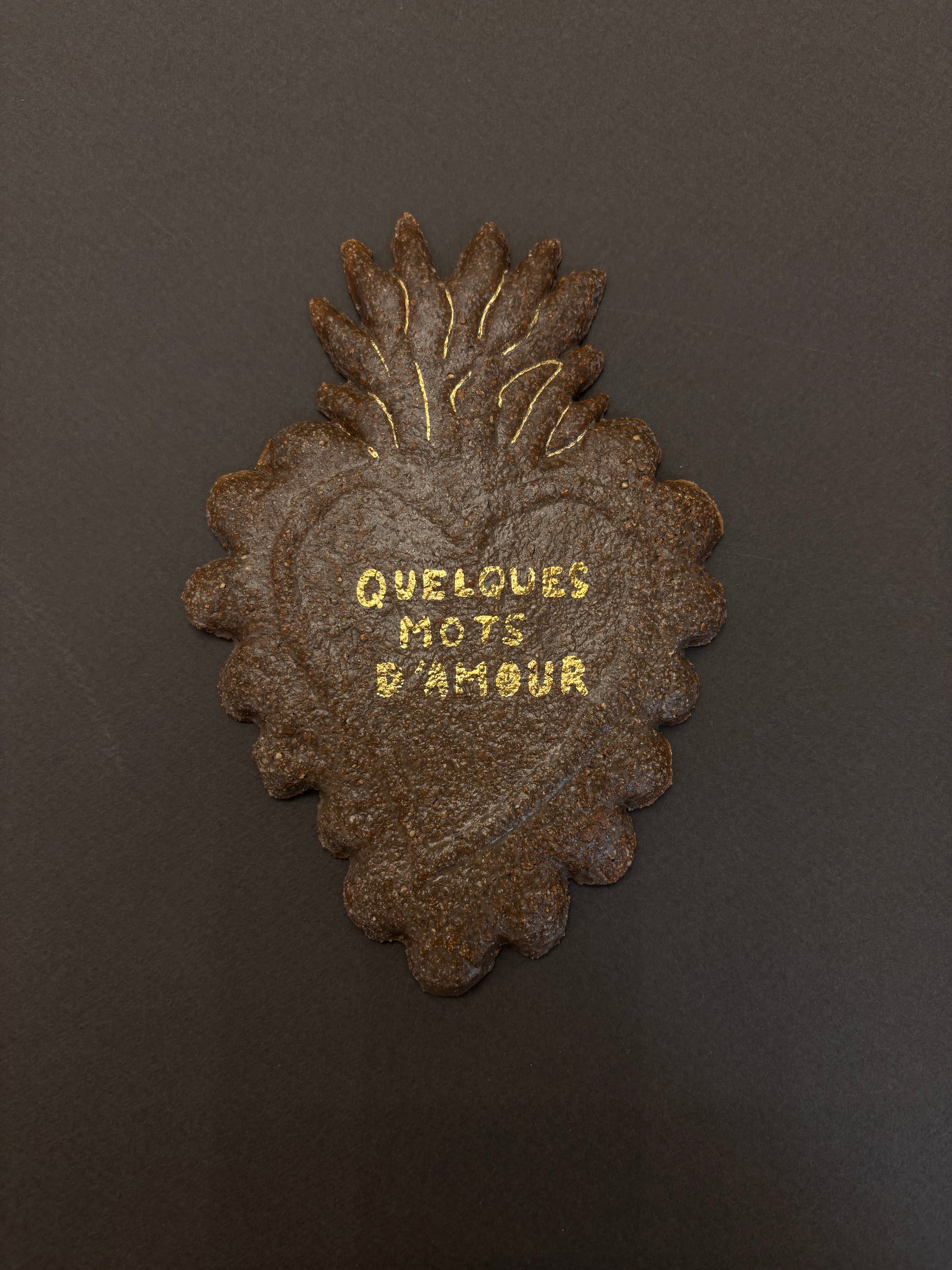 Ex-voto en céramique, peints à l’or à la main.